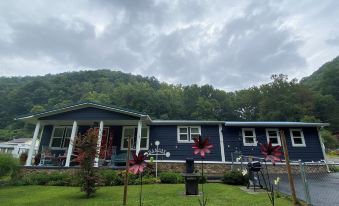 Navy blue house with fenced in front yard, front porch, gas grill, fire pit & landscaped yard! Great room with sectional sofa and leather recliners. Fully stock kitchen. All linens and towels with washer and dryer. Large paved driveway. 10 minutes to Rockhouse Trail Head 5.6 miles no need to trailer your sxs About pets:Pets allowed: dogs less than 20 lbs per pet (limit 2 pets total).About checkOut:Check out before 10:00 AM.About children:Children allowed: ages 0-17.About customRules:If your visiting to ride the Hatfield McCoy trail system please arrive before dark to make sure you can get your trailer parked..Please be respectful of the surrounding neighborhood limited noise from your machines in late and early hours. Enjoy your stay and be safe riding!.About checkIn:Check in after 4:00 PM.About smoking:Smoking is not permitted.About minBookingAge:Minimum age to rent: 20.About events:No events allowed.
