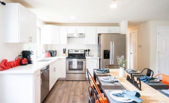• Fully stocked kitchen with Keurig, K-pods, gourmet tea, cookware, and utensils