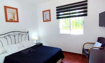 The farm is located about 4 km from the town, has mountain views, is about 17 km from the beach, 20 km from the center of Malaga and 20 minutes from Malaga airport. The farm has 2 swimming pools with several garden areas, there is barbecue, The house has 2 floors, on the ground floor there are 2 living rooms, one of them with fireplace, 2 bedrooms, kitchenette and bathroom and on the top floor, there are a large gate of about 80 square meters. About pets:No pets allowed.About checkOut:Check out before 11:00 AM.About children:Children allowed: ages 0-17.About checkIn:Check in after 4:00 PM.About smoking:Smoking allowed: in designated areas.About events:No events allowed.El incumplimiento da lugar a la anulación.
