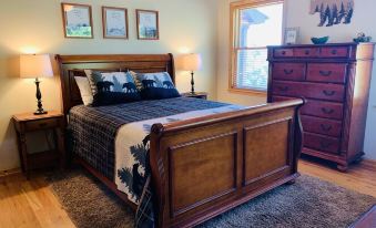 - Basement bedroom 1 - Queen size bed with memory foam topper. This room has a door that opens to the bottom deck and has beautiful views.