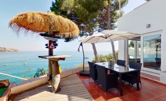 "Mare Cubum" offers magnificent views of the bay from every room. There are 2 spacious bedrooms, 1 bathroom with sea view and a second toilet, a cold / warm outdoor shower, an over-complete kitchen, a modern sunny living room with fireplace and 3 spacious terraces with sea views. Each bedroom has its own furnished terrace with sunscreen. On the ground floor there is toilet / guest bathroom with washing machine and on the first floor is the bathroom with Jacuzzi and great sea views from the tub. The kitchen is fully equipped with dishwasher, microwave, hot air oven with ceramic hob, toaster, coffee maker and a modern fridge / freezer. Cubo del Mar is equipped with air conditioning, fans, satellite TV, WiFi and stereo with Aux IN .