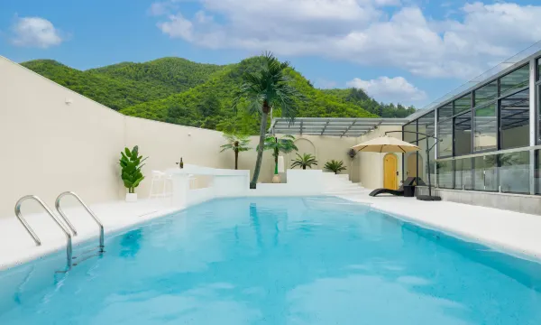 Yes, On this side of the mountain · Axin's home Eric designed swimming pool vacation has a swimming pool for guests.Does On this side of the mountain · Axin's home Eric designed swimming pool vacation have a pool?