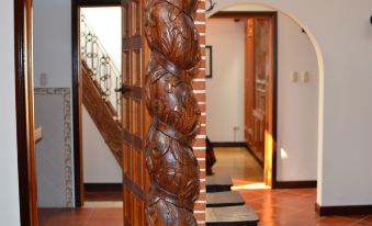 This Luxury Colonial Style house has 3 bedrooms (one downstairs, two upstairs), 2 full baths, kitchen and a family room with a pool table. Flat screen TVs in each room. The kitchen is fully equipped. The terrace has a lovely view of the volcanoes and surrounding mountains. There is a laundry room (The House keeper will do the laundry) and Wi-fi High speed Internet access and a secure safe deposit box for important papers.