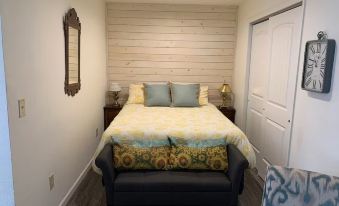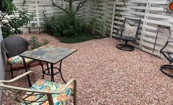 Only one mile from Olde Town Arvada, you can browse the shops, grab a bite to eat or a drink, or catch the light rail with service to downtown Denver and the airport. Near I-70 for easy access to the mountains for hiking and skiing. One block from Ralston Central Park which features a paved path along the creek—plenty of on-street parking. There is also a futon upstairs in the loft. There is a dog on the premises. He's friendly and will stay on his side of the fence, but he will bark upon arrival. Guests will have their private entrance adjacent to the garage. Its own fence encloses the carriage house and has multiple outside private sitting areas.About pets:No pets allowed.About children:Adults only.About smoking:Smoking is not permitted.About events:No events allowed.