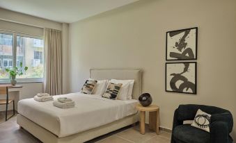 Great Location for the flat near Omonia. Beautiful room. Very comfortable bed and shower. Great ac. Happy about the coffee machine. Good to know one has access to the main hotel. Very responsive to questions. However if you don’t have the App it is confusing. Appreciate the extra info on the site about neighbourhoods.