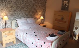 Ground floor: living room with fully equipped kitchen. First floor: two bedrooms, a bathroom with shower. Park your car in the garden.
