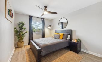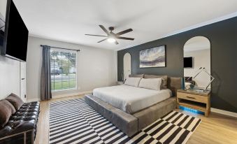 Enjoy a contemporary stay in this stylish 3-bedroom, 2-bath home. The master suite features a luxurious Tempur-Pedic king-size bed, while the other bedrooms offer a queen bed and two full-size beds. Each room is tastefully furnished with high-end brands like RH, West Elm, Allmodern, CB2, and Pottery Barn, ensuring both comfort and style.