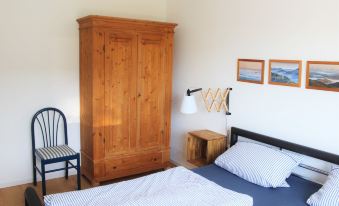 1 double bed (1.80 x 2.00 m), solid wood wardrobe