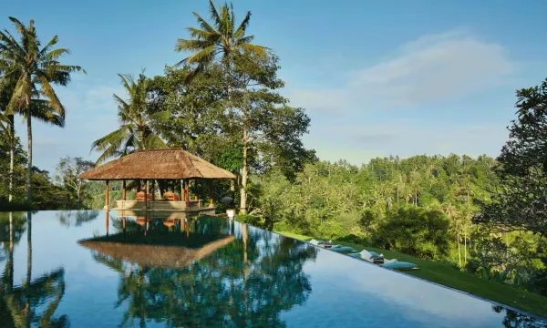 Inspired by a traditional village Amandari is framed by jungle and rice terraces in Balis cultural heartland. Alang-alang-thatched houses some with pools - all with private tropical gardens - cosset guests under bamboo ceilings their suites elegantly decorated with teak and coconut-wood. The grounds are both sacred and essential to local families; children attend dance classes here and religious processions pass through regularly leading down the steps that spill below Amandari to a 7th-century stone tiger - a motif repeated throughout the property. Follow the road out of the village to hike or bike the emerald-green landscape or head further afield for artisan villages - hidden temples and the palaces and boutiques of Ubud.
