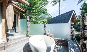 酒店整體審美很歐美野奢,每一處的搭配都是又原始又精緻。我們這次住的帶泳池的房型非常別緻,在院子裏發呆很治癒。服務是我目前在峇裏島遇到最好的,每個服務員都特別樸實熱情。早餐水準很高,甚至很澳洲。白天進酒店的時候會擔心晚上是不是會很暗,到了夜晚很驚喜,居然到處都是暖暖的燈,院子裏的石猴子也是一個個燈柱,很温暖,完全不會害怕。美中不足的是我們住的幾天都下雨,小木屋會比較潮濕;淋浴是露天的,晚上還是有點冷;室外的廁所馬桶有點舊了,會給人衞生差一點點的感覺。