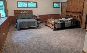 Consider this cabin your home away from home while you visit Bedford. This fantastic property boasts 4 bedrooms with a variety of bed options to accommodate all guests comfortably. Awesome outdoor space to enjoy some summer nights at the campfire! With 2 bathrooms equipped with showers and hair dryers, everyone can freshen up with ease. The living room offers additional sleeping space with a futon and child bed. Experience the magic of Bedford at our cabin. There are miles of trails to hike and borders thousands of acres of state forestAbout pets:No pets allowed.About checkOut:Check out before 11:00 AM.About children:Children allowed: ages 0-17.About customRules:Unfortunately the large fireplace indoors Cannot be used.Smoking is permitted outdoors,Please keep your speed to 10 mph up the lane past our neighbors! Thanks!.About checkIn:Check in after 3:00 PM.About smoking:Smoking is not permitted.About minBookingAge:Minimum age to rent: 18.About events:Events allowed: family gatherings.Maximum event attendees: 50.