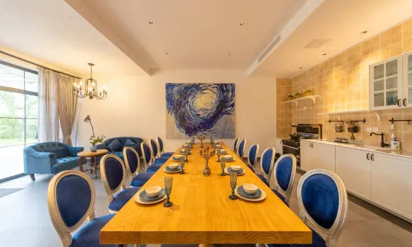 Beijing Qiyue Homestay is a homestay hidden in the mountains, where you can live the life you long for. The homestay is located at No. 61 Laorenjia, Xisan Village, Huairou Town, Huairou District, Beijing. The rooms are clean and tidy, the environment is beautiful, and the facilities are complete. It is the best choice for travelers to relax and is committed to providing them with a comfortable, convenient, and distinctive accommodation experience. The homestay is located at the foot of the Hongluo Mountain Range, adjacent to the Shengquan Mountain Scenic Area, famous scenic spots such as Hongluo Temple, Yanqi Lake, Hongluo Huiyuan Valley, and Mutianyu Great Wall, providing travelers with a rich range of tourism choices. Since its establishment, Qiyue Homestay has relied on its unique design style, comprehensive facilities, and thoughtful service. The design style of Qiyue Homestay is simple yet warm, emphasizing details and quality. The homestay is divided into three floors, with a unique dual courtyard design on the first floor. The front yard has a large temperature controlled infinity pool, while the backyard is a gathering and barbecue area, equipped with an independent KTV room, an open kitchen, and a living room with a huge projection screen. It is suitable for both family gatherings and business meetings. The bedroom areas on the second and third floors have simple furnishings, high-quality furniture and cotton fabrics, creating a fresh and natural living atmosphere.