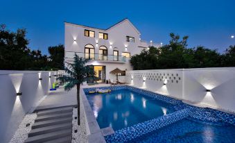 Xiaobai Xiang Light Luxury Double Bed Room With Panoramic Floor-to-Ceiling Windows, Pool View, And Blackout Curtains