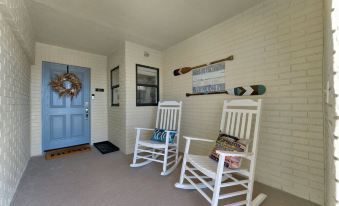 You’ll be greeted by a spacious front porch with rocker chairs and views of the beach – perfect for early morning coffee!