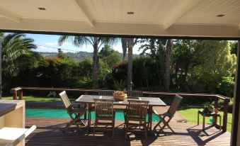 Yes, Sunny family home in the winelands has a swimming pool for guests.Does Sunny family home in the winelands have a pool?