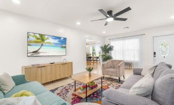 Escape to your beach oasis in the heart of Boynton Beach, where modern luxury meets vibrant tropics. Less than 5 minutes from shopping centers, restaurants, Ocean Ridge Beach, and Lake. Features include a large inground pool, spacious rooms, a fully equipped kitchen, onsite laundry and dryer unit, yard games (cornhole), free wifi, smart TVs, and a gigantic living space! Whether you're seeking adventure or simply craving a peaceful retreat, our home offers the perfect blend of convenience and serenity.About pets:No pets allowed.About children:Children allowed: ages 0-17.About smoking:Smoking is not permitted.About events:Events allowed: family gatherings and birthday parties.Maximum event attendees: 10,Events are permitted with a $300 fee..