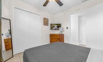 - 2 bedrooms, 1 bath: Two queen beds and a sofa bed, accommodating up to 5 guests.