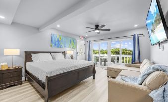 Unwind in one of three spacious bedrooms, two of which have en-suite bathrooms. The newly updated bathrooms offer a refreshing retreat for guests to feel rejuvenated after a fun day in the sun. Each bedroom also has a big screen TV and large closet space. Two bedrooms also have direct access to the outdoor space, one being a private balcony only accessible from that bedroom.