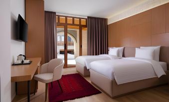 Nestled in Bukhara's Old Town, Mercure Bukhara Hotel is surrounded by UNESCO-listed landmarks that inspired its architects to blend tradition with elegance using natural wood and handcrafted ceramics. The hotel features a stunning XVI-century-style hammam with a serene pool, a state-of-the-art gym, a well-equipped conference hall for 50 guests, and a refined restaurant with exquisite cuisine-alongside a vibrant bar that constantly delights and surprises.