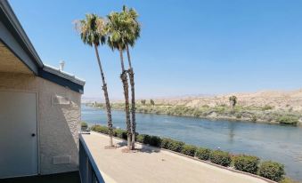 This special place is ON THE RIVER! Others say they are and may have a sliver view of the river, but this one really is ON THE RIVER. Bring your boat and/or jet skis to the private marina and dock, 3 car garage, close to everything, Restaurants, 5 Golf courses, stores, gyms. Very CLEAN, renovated, all modern, well maintained, all amenities you need. Enjoy the lapping waves in the early morning on your main balcony over the River with coffee and late night with wine or go on your private master bedroom balcony in the Middle of the night! I finally found my dream of owning a home on the water & want to share it with everyone for the Joy it brings!! Bedrooms both have Blackout window coverings. Plenty of parking, separate lot for Trailers, Gated community. Very quiet and peaceful. Community Pool and Jacuzzi RIGHT BEHIND MY UNIT, private dock ON THE RIVER.