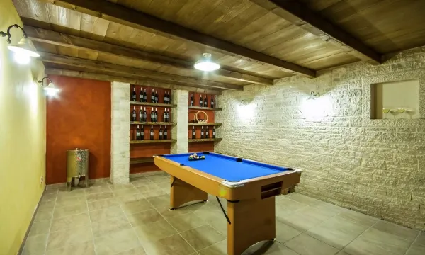 This high quality and sun-drenched holiday home is located in a quiet village near Pula and Rovinj. There are still 2 holiday homes on the large and fenced property. However, the house is surrounded by a hedge and trees, so that your privacy remains secure. There are 2 tennis courts, a basketball court and playground, as well as a bocce court, available for guests to use together. The heated swimming pool, with comfortable sun loungers for relaxing sunbathing, invites you to refreshing moments and relaxation. A covered terrace with summer kitchen and a large dining table are available for culinary experiences with your family. In the adjoining sauna with bathroom you can also work up a sweat on cool evenings. The villa is modern and tastefully decorated and fully air-conditioned. Each bedroom has its own bathroom. In the basement of the house there is a leisure room with billiards and kitchen. Furthermore there are: Playstation2, 2 table tennis rackets, 4 bicycles, a seesaw, a slide and bocce balls. Visit the magical village of Vodnjan! The landmark of the small town, visible from afar, is the highest church tower in Istria at 60 meters. This belongs to the Basilica of Saint Blaise. The new water park (Istralandia) and adventure park (Glavani park) are the ideal destination for adrenaline-packed funAbout pets:Pets allowed: dogs less than 55 lbs per pet (limit one pet total).About checkOut:Check out before 10:00 AM.About children:Children allowed: ages 0-17.About checkIn:Check in after 4:00 PM.About smoking:Smoking is not permitted.About events:No events allowed.