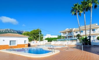 Residencial Garduix: Simple, comfortable apartment block. Outside the resort, 200 m from the centre of Calpe, in the district Garduix, in a quiet, sunny position residential area (villas), 2 km from the sea, 2 km from the beach. For shared use: property (fenced), courtyard, swimming pool (seasonal availability: 01.Jan. - 31.Dec.). Children's pool, outdoor shower, arbour, barbecue, parking (limited number of spaces). Shop 1 km, grocery 1 km, supermarket 1 km, shopping centre 1 km, bar 1 km, bakery 1 km, 26 minute walk to the centre, bus stop "Estacion Bus Calpe" 2 km, sandy beach "Playa Arenal" 2 km. Sports harbour 3.4 km, marina 3.4 km, surf school 3.4 km, sailing school 3.4 km, tennis 1.1 km. Nearby attractions: Casa del Cocó, Sierra Bernia, Guadalest. Hiking paths: Peñon de Ifach. Please note: suitable for families, suitable for seniors. Neighbourhood highly sensitive to noise. Quietness and good behaviour expected. "Garduix", 3-room apartment 66 m2 on 1st floor. Object suitable for 2 adults + 2 children. Bright, simple and comfortable furnishings: living/dining room with satellite TV, digital TV and air conditioning. Exit to the terrace. 1 room with 1 french bed (1 x 160 cm, length 190 cm), air conditioning and forced-air heating. 1 room with 1 french bed (150 cm, length 190 cm), air conditioning and forced-air heating. Kitchen (4 hot plates, oven, dishwasher, toaster, kettle, microwave, freezer, electric coffee machine). Shower/WC. Oil heating. Heating available only from 01.11. to 30.04. Terrace 8 m2. Terrace furniture. Panoramic view of the sea and the resort. Facilities: washing machine, iron, children's high chair, baby cot for up to 2 year olds, hair dryer. Parking space n Entre la 34 y 36 (fenced 1 car). Suitable for families. AT-456733-A