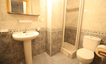 This accommodation offers a double bedroom, a twin bedroom and a bathroom with a shower and a bath. Bed linen and towels are provided.