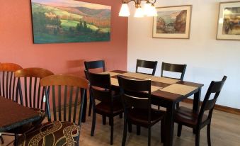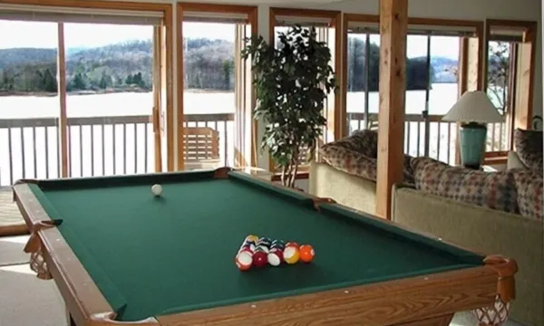 Our new large covered deck with an outdoor ceiling for summer breeze and, electrical outlets connects with the stairs halfway down to the dock. It is high enough up to also give spectacular views. Since building our home in 1992, we have continued to add many renovations. As an example, all the bathrooms were totally redone in the last few years. Our home has two large complete kitchens, two dining rooms, two comfortable living rooms each with their own large screen TVs. The lower living area has a regulation pool table, which guests really enjoy. The privacy of having two separate living rooms allows more choices for our vacationers. The lower level also has a covered deck accessible from all rooms. Since we are on the west side of Deerfield, we have access to a local provider’s internet tower. The speed is better than our Comcast business account in Knoxville.