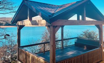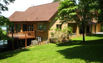 The STEWART NORRIS LAKEFRONT HOME is located in Deerfield Resort near the point where Cedar Creek meets Norris Lake. Our sunset lake view is one of the widest and most panoramic on all of Norris Lake. Our home is a stunning, cedar and glass, 5800 sq. ft., on a full acre. It comes with a new private boat dock, wrap around decks and a new beautiful large separated covered deck. The home is a beautifully furnished vacation rental home decorated with original art throughout. Our amazing view can been seen through the wide array of large windows in our main room. The windows are thermal energy efficient double pane that resists sun and heat while still giving the wonderful view. All the other rooms on all three floors are lake facing. We are adding major upgrades for our 2025 rental season. This includes a new dock and cement steps with outer channels for the dock ramp wheels to keep the ramp always secularly positioned. Adding to this are two cabeled dead men to completely hold the covered dock with slip in place. This state of the art solution gives us the most dock stability available.