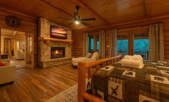 With its cozy ambiance, abundant amenities, and convenient location, this 6-bedroom cabin in Burnsville promises an unforgettable vacation experience. Immerse yourself in the tranquility of the great outdoors, create lasting memories with your loved ones, and discover the perfect balance of comfort and adventure.About pets:Pets allowed: dogs less than 50 lbs per pet (limit 4 pets total).About checkOut:Check out before 10:00 AM.About children:Children allowed: ages 0-17.About customRules:If you are found to bring in a personal pet, without letting Host know BEFORE booking, there will be a fine of $500..If you have a service animal, please get in touch with host BEFORE booking. We will make every effort to accommodate SAs as per the ADA.,If host is notified BEFORE booking and has permitted a pet during your stay, then pet fees are $55 Pet fee per pet per night..About checkIn:Check in after 4:00 PM.About smoking:Smoking is not permitted.About minBookingAge:Minimum age to rent: 25.About events:Events allowed: family gatherings, birthday parties, weddings.Maximum event attendees: 13.