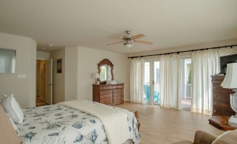 The master bedroom and large guest room are situated on the entry level floor each with direct access to the deck. There is also a tiled foyer, full hallway bath, and laundry room to make coming back from a day at the beach a breeze. Full two car garage with access to an ocean kayak, beach chairs, beach toys, gas grill and a 4 person Bicycle perfect for the short trip to the beach or take it to town.