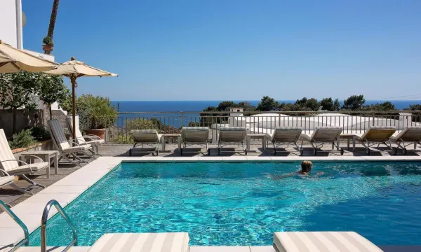 This is a great hotel in the heart of Capri but in a nice peaceful area overlooking the sea. Great outdoor area, perfect for sunbathing while the bar serves drinks throughout the day. It is very clean and the staff very friendly and helpful. The owner Pietro is very hands on, keeping an eye on everything to make sure everything is well run. He is also very charming to speak to and made time to always chat to us and make us feel welcome. Thanks for a lovely stay.