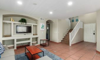 The lively den sits just off the kitchen and features a massive sectional sofa, perfectly situated in front of a Smart TV. Curl up with a big bowl of popcorn to binge-watch your latest favorite series or take in a movie.