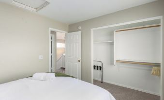 The third private guestroom features a cozy queen bed, luxury linens & pillows, & a large walk-in closet. When you retire to your room in the evening 2 bedside tables with lamps are available if you need to wrap up some work or would like to read a few pages.