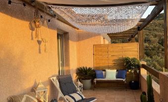 La Maison Bleue has a very large terrace perfect watching the sunset on the gulf,having dinner, or sunbath .This house is decorated with the colours of the Mediterranean sea.