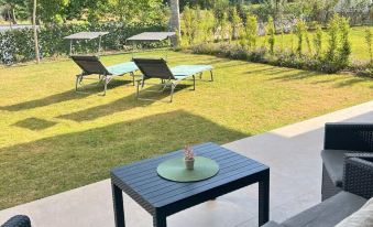 It features a private garden terrace with natural grass and an elegant open-plan kitchen equipped with BOSCH appliances.