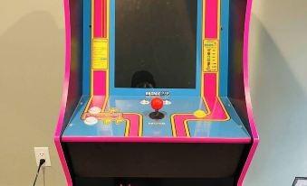 There are 2.5 baths, open concept living/dining with sweeping vaulted ceilings and a family room upstairs with large flat screen tv, DVD's, games, and pull out sofa.