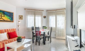 Puerto Nautico: Cosy, comfortable apartment block "Club Nautic", 6 storeys. En el sector Club Nàutic 300 m from the centre of Empuriabrava, in a central, sunny position, 500 m from the sea, from the beach, south facing position. In the complex: restaurant, bar, internet café, fitness room (extra). Solarium, lift. Public car park. Grocery 400 m, supermarket 400 m, shopping centre 300 m, restaurant 100 m, bar 50 m, bakery, café 10 m, bus stop 3 km, railway station "Figueres" 12 km, sandy beach "Empuriabrava" 500 m, diving center 2 km. Sports harbour 10 m, golf course (18 hole) 12 km, surf school 1.5 km, sailing school 1.5 km, tennis 3 km, minigolf 1.5 km, riding stable 3 km, sports centre 50 m, walking paths from the house 2 km, cycle lane 1.6 km. Nearby attractions: Centro paracaídismo Skydive 3 km, Túnel del viento 3 km, Parque Acuático Aquabrava Roses 8 km, Museo Dalí Figueres 15 km, Casino y castillo de Peralada 12 km, Ruïnes de Empúries 21 km. Groups of teenagers on request only. Please note: the keys‘ handover takes place by the agency Interhome in Empuriabrava. Additional accommodations can be booked. Neighbourhood highly sensitive to noise. Quietness and good behaviour expected. 2-room apartment 40 m2 on 2nd floor. Modern furnishings: living/dining room with 1 sofabed, digital TV and flat screen. Exit to the balcony. 1 room with 1 french bed (140 cm, length 90 cm). Open kitchen (3 hot plates, microwave, electric coffee machine). Bath/bidet/WC. No heating option. Balcony. Terrace furniture. Partial view of the port. Please note: apartment courtyard side. Maximum 1 small pet/ dog allowed. TV only ES. HUTG006232 ESFCTU000017020000174310000000000000000000HUTG0062323