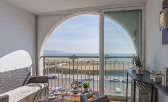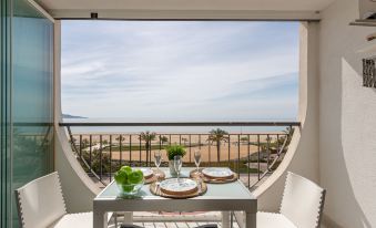 Salins 1ª linea: Not suitable for people with reduced mobility, the lift goes to a lower floor and then you have to climb about 20 steps. large, beautiful, comfortable apartment block "Bahia". In the centre of Empuriabrava, in a central, sunny position, 50 m from the sea, road to cross, south facing position. In the house: lift. Shop, grocery, supermarket, shopping centre 200 m, restaurant, bar, bakery, café 20 m, internet café 500 m, bicycle rental 100 m, pub garden 20 m, sandy beach "Empuriabrava" 50 m. Sports harbour 500 m, golf course (18 hole) 8 km, surf school, sailing school 800 m, tennis 3 km, minigolf 700 m, riding stable 2 km, walking paths from the house, cycle lane 50 m. Nearby attractions: Centro Aeródromo y túnel del viento 3 km, Parque Acuático Roses 7 km, Casino y festival de Perelada 12 km, Museo Dalí de Figueres 15 km, Ruïnes de Sant Martí de Empuries 21 km, Cadaqués 23 km. Please note: There are more similar properties for rent in this same residence. 2-room apartment 52 m2 on 4th floor, south facing position. Bright, fully renovated in 2015, very modern and cosy furnishings: living/dining room with 1 sofabed, satellite TV and digital TV (flat screen). Exit to the balcony, south facing position. 1 room with (140 cm, length 190 cm), 1 french bed and TV. Open kitchen (4 hot plates, 4 gas rings, toaster, microwave, electric coffee machine) with bar. Shower/WC. Electric heating, air-conditioning. Small balcony 8 m2, south facing position and west facing position. Terrace furniture. Marvellous panoramic view of the sea and the bay. Facilities: washing machine, safe, hair dryer. Internet (WiFi, free). Please note: TV only ES, FR, DE. HUTG020015
