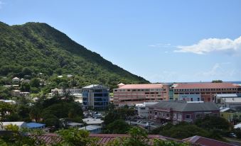 Located in the prominent area of Rodney Heights, only five minutes away from the heart of downtown Rodney Bay is this roomy fully furnished two bedroom, two and a half bathroom holiday rental. This lovely lower level property is surrounded by many flowering plants and fruit trees and gives way to an amazing panoramic view of the Marina, Pigeon Island and The Caribbean Sea from its capacious patio.