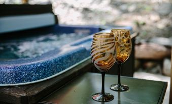 Treat yourself to a stay in one of the 9 individually decorated guestrooms, featuring outdoor private hot tubs and heated floors. Your memory foam bed comes with premium bedding. Rooms have private patios. Kitchens are outfitted with full-sized refrigerators/freezers, ovens, and stovetops. Complimentary wireless internet access keeps you connected, and 32-inch Smart televisions are provided for your entertainment.