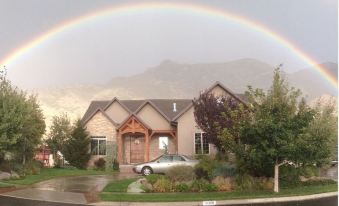 Located in a picturesque area next to Mt. Timpanagos. Comfy beds with clean hot tub. All the added little comforts of home thoughtfully provided. We hope to revisit soon!