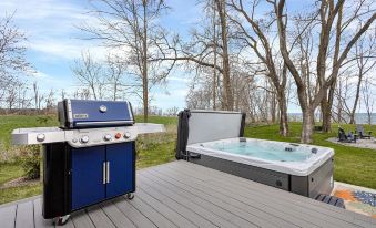 - Safety Matters! We are lakeside on a 30-foot bluff; children must never be left unattended outside, and there is no direct access to the water from the property.