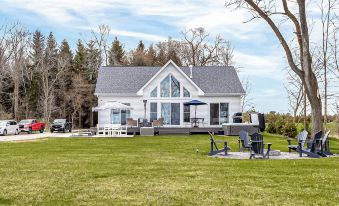 Discover our new modern cottage on Lake Michigan’s coast, nestled on a spacious 3.5-acre lot. Outdoors, unwind in the seven-person hot tub or enjoy the expansive backyard. Inside, every room offers stunning views and tranquil scenes, complemented by modern amenities and stylish decor. Perfect for a serene escape, this cottage promises a blend of luxury and nature.
