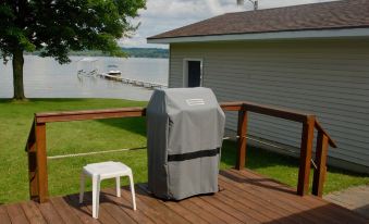 150 foot private dock for your boating use and swimming pleasure. Extremely family friendly waterfront firm sandy bottom, and crystal clear water. Lake depth gradually increases to 3.5 feet over the length of the dock (130 ft). During the sunny daytime relax in the shade of two great maple trees at the shore. In the evenings enjoy sitting around the firepit with family and friends.