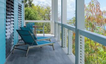 This lovely accommodation in desirable Upper Carolina has been completely rebuilt since the 2017 hurricanes and is truly spacious. The currently available one-bedroom accommodation offers nearly 1500 sq. ft. of living space, all on one level. Occupying the middle floor of a breezy, verandah-style, two-storey house, this accommodation will give you plenty of room to relax and recharge. Comfortable en suite bedroom/bathroom with four-poster, Queen-sized teak bed with hotel-grade, pillow-top mattress and 100% cotton linens. Direct access to the wrap-around verandah from the bedroom, bathroom and kitchen. Comfortable TV/living room. Large, eat-in kitchen with all new cabinets, countertops and appliances with entertaining-size dining space. The verandah, with beautiful valley and water views, is the signature feature of this accommodation. It's perfect for coffee and tea in the morning, reading and relaxing in the sun during the day, as well as drinks and dining in the evening.About pets:No pets allowed.About checkOut:Check out before 11:00 AM.About children:Children allowed: ages 0-17.About checkIn:Check in after 4:00 PM.About smoking:Smoking is not permitted.About minBookingAge:Minimum age to rent: 25.About events:No events allowed.