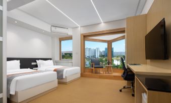 Smart Business Lake-view Double Bed Room With Lake Views, Leisure Couch, Fridge, Floor-to-Ceiling Window, And Balcony