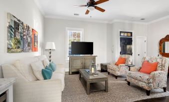 Indulge in the luxury of hotel-quality sheets and towels, providing the ultimate in comfort during your stay. The home features exquisite Brazilian hardwood flooring, elegant crown moldings, and impressive 10-foot ceilings, creating an inviting and sophisticated ambiance throughout.