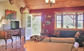 Enjoy this picturesque and cozy cabin set on a 150-acre farm, truly idyllic in all four seasons. Sit on the porch and take in the beautiful views of rolling hills and catch a glimpse of the horses and cattle roaming the farm. The cabin includes one bedroom with a king bed and a spacious loft with four twin beds.