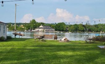 Cottage #3 at the Stow Cottages at Chautauqua - This light and modern 3 bedroom cottage is settled directly on beautiful Chautauqua Lake! Part of the Stow Cottages at Chautauqua, our mini resort has a beautiful lakefront lawn, private boat docks, a fire pit, picnic tables, and even a little beach where you can dip your toes into the water! Cottage #3 has 3 bedrooms - a king bedroom, a queen bedroom, and double twin bedroom. There is also a living room,